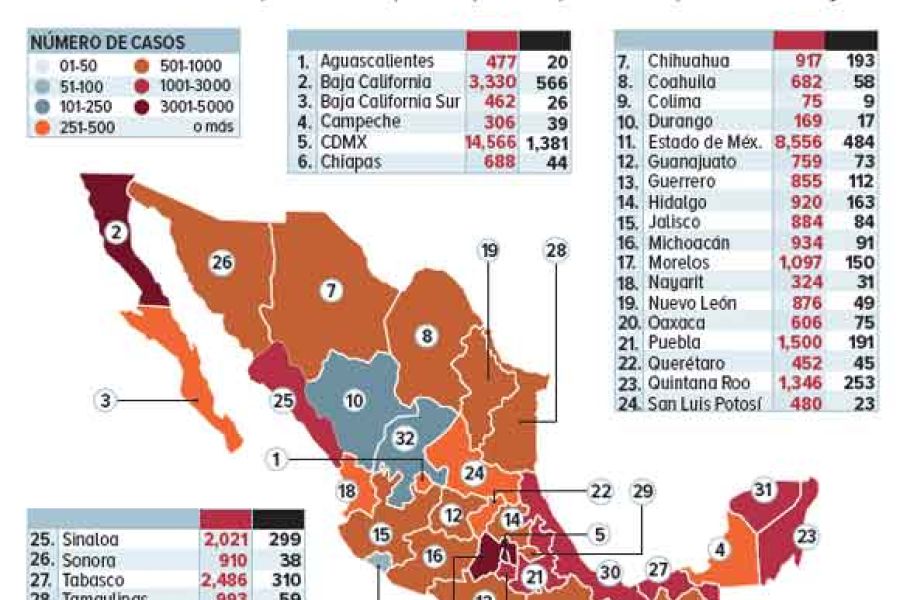 En lo que va de la pandemia, el Valle de México es la zona que registró el mayor número de casos: 14 mil 566 están en la capital del país y 8 mil 556 en la entidad mexiquense.